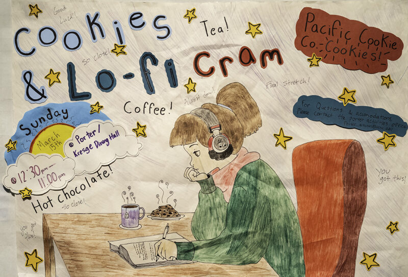 If studying in your room or apartment is not getting you where you need to be, change up the scenery and head to Porter Dining Hall for an hour or three. Bring your book, bring your final Draft, or your flash cards.