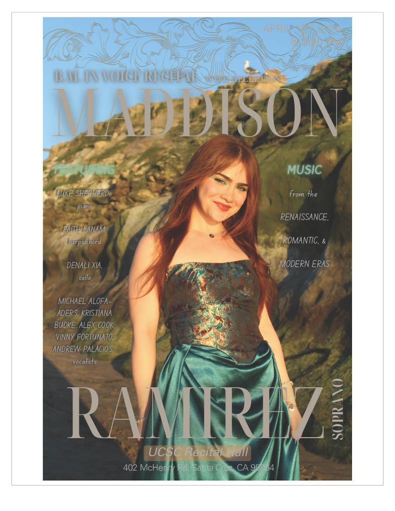 Maddison Ramirez, soprano, presents their Bachelor of Music (B.M.) recital, with music from Renaissance, Romantic, and Modern eras. Accompanied by Luke Shepherd, piano; Faith Lanam, harpsichord, Denali Zia, cello, and […]