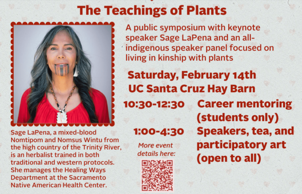 Feb 14 Honoring Our Relatives: The Teachings of Plants 1:00 pm Hay Barn 94 Ranch View Road, Santa Cruz Event Details Get Directions