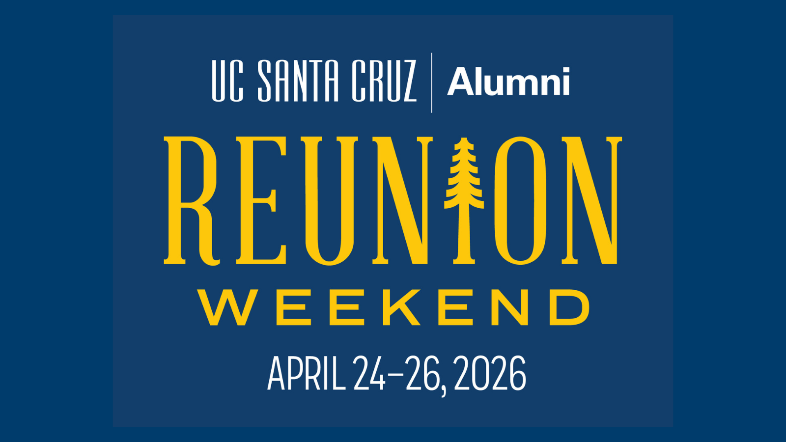 Apr 24 April 24, 2026 – April 26, 2026 Alumni Reunion Weekend 2026 UC Santa Cruz campus 1156 High St, Santa Cruz Event Details Get Directions