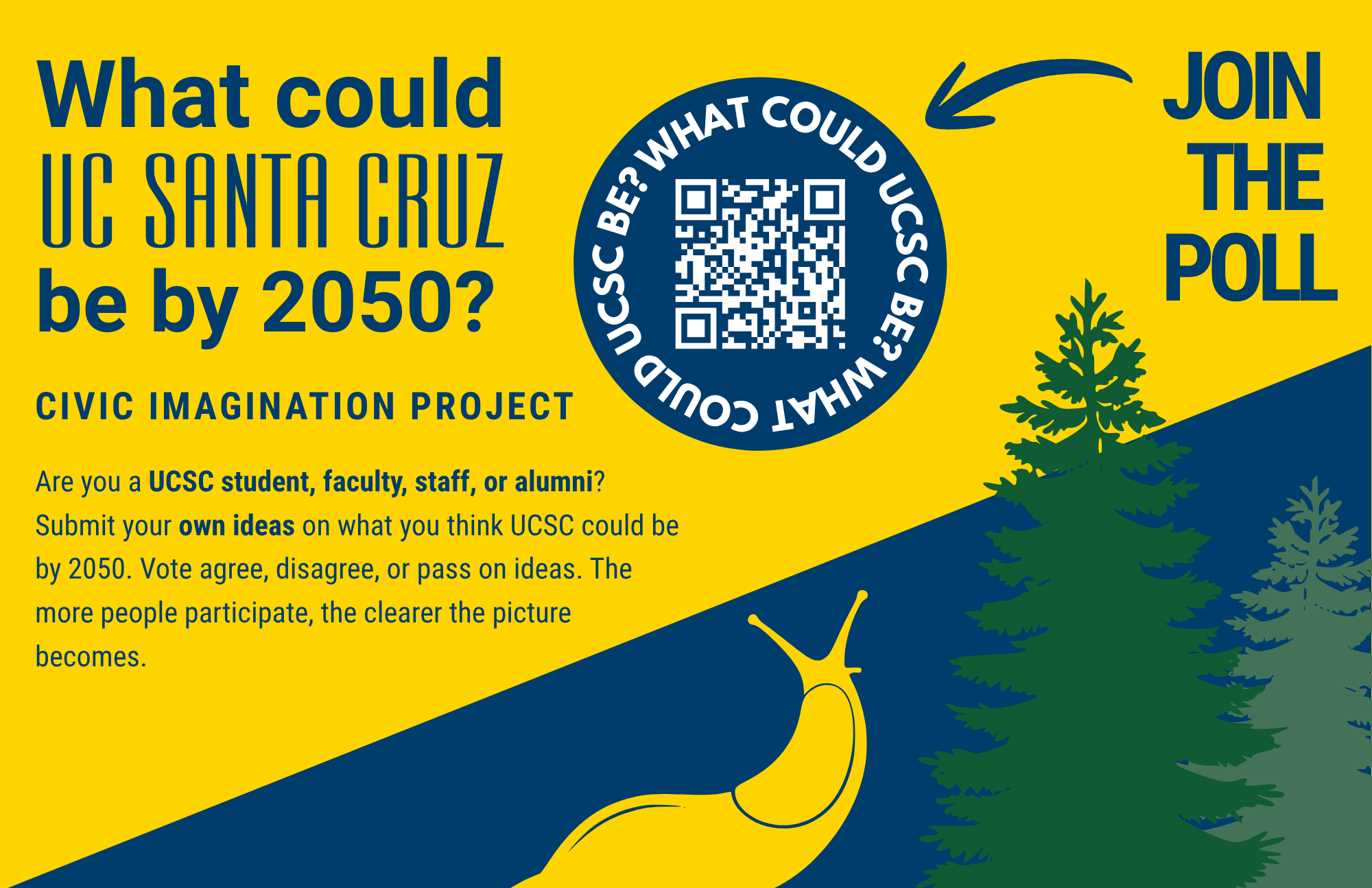 May 11 What Could UCSC Be By 2050? 5:30 pm Cultural Center – Merrill College 641 Merrill Rd, Santa Cruz Event Details Get Directions